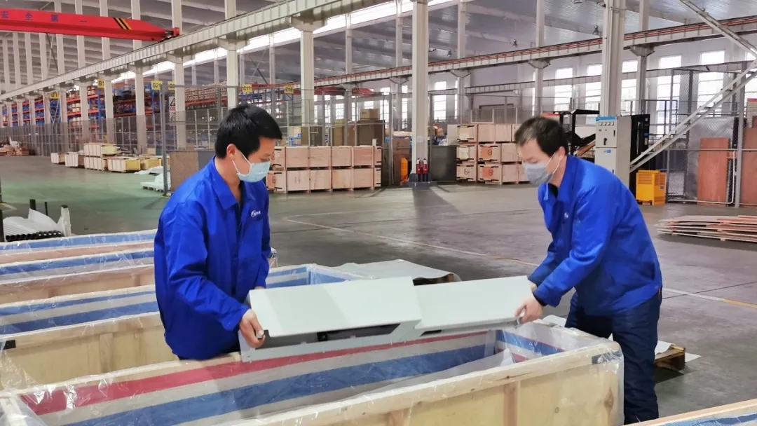 為了能夠盡快給客戶發貨,天門紡機想方設法,協調了各方資源,克服了重重困難,終于開啟了發貨模式。春節前天門紡機根據2020年上半年的銷售合同和全年的市場預測,物資采購充足,資金準備充足,同時加班加點,完成了一季度需發貨的并條機生產任務,并適當地庫存了一些產品,對客戶的供貨暫時不會造成影響。
